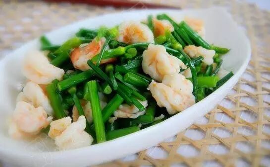 制用法:将鲜虾去肠去壳洗净后待用。先将姜片放入锅中爆香,然后放入鲜虾炒至八分熟时再放入韭菜,略炒后加入适量的精盐即成。此菜可每周吃两次。