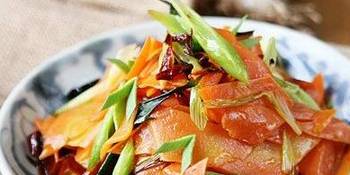 1、胡萝卜先用水焯过是为了稍后的快速炝炒,不焯水也可以,先炒胡萝卜最后放蒜苗,不过口感会不一样。