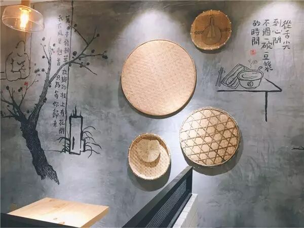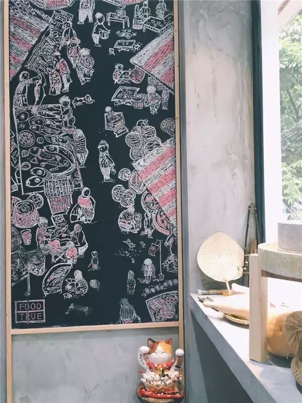 嗅觉灵敏一直是好料菌的技能之一,洪文六路,我真的不是来买你们都知道的凉皮的,闻到了些豆香,门脸干净简单,冲着这些,就进了“馥村”,小店简洁清朗,入眼有着近来风靡的冷淡风,开放式厨房后的白雾却暖起了人间烟火味,右侧的手绘墙,嗯,在讲述着“馥村“里的吃食们。