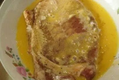 4.将腌制好的大排放入鸡蛋液中,使两面沾满鸡蛋液