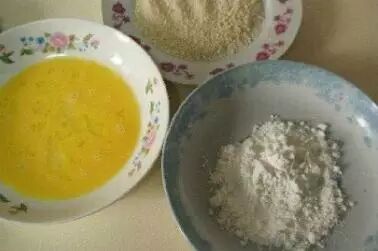 3.准备打散的鸡蛋液,干淀粉,面包糠