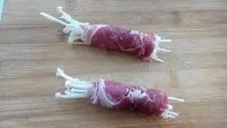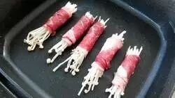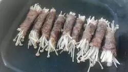 取适量金针菇,用肥牛片缠在金针菇上。