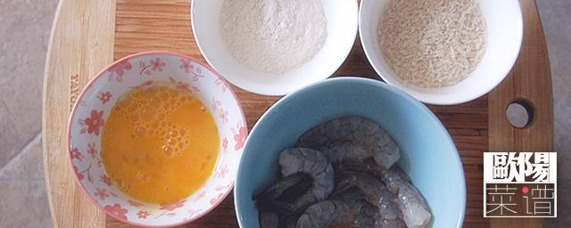 腌好的明虾分别依次裹上淀粉,蛋液,面包糠。