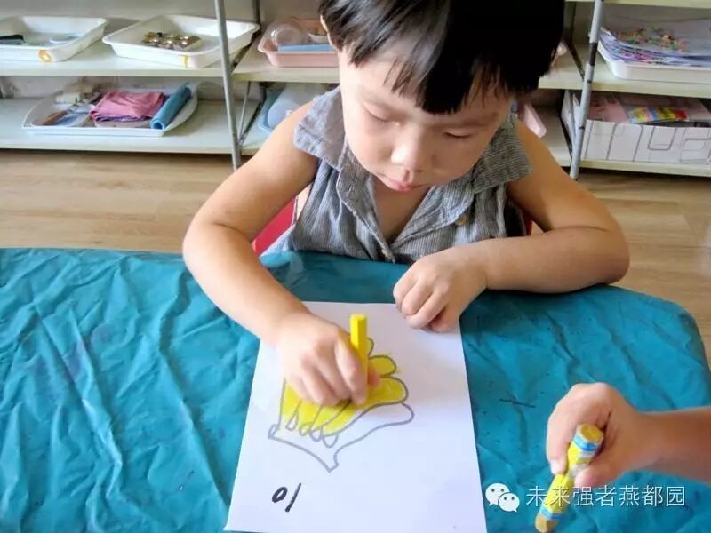 小朋友们发挥了自己的想象力选择了自己喜欢的蜡笔来进行涂色。另外,通过手握蜡笔涂色可以培养幼儿的运笔能力,为幼儿将来绘画和书写奠定良好的基础。