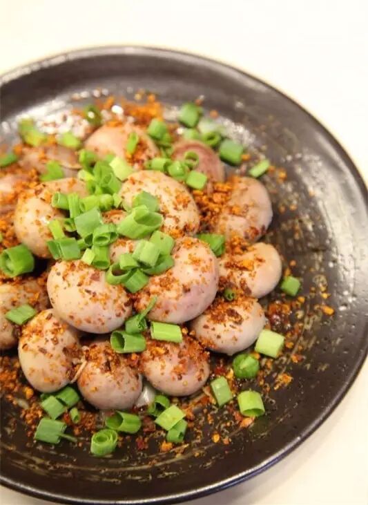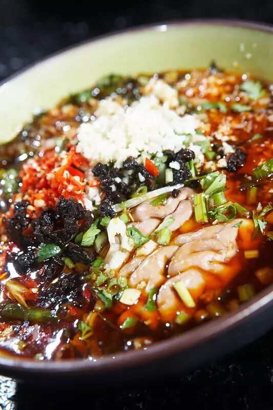 成都几乎所有串串香,都会保留这个菜品,但每家还都有一些自己的创新和秘方。像卢妈,用她几十年的麻辣卤水功底,还原了传统冒菜的味道,以及更有质感的食材。比如“麻辣兔肚”,又名口口脆,含义每一口都是那么脆爽。兔肚在麻辣的卤水中恰如其分的烫煮,入碗。然后,拌入四川的二荆条辣椒炒制的辣椒面,还有花生和黄豆经过炒制变酥脆以后,用石磨研磨成很细的粉面,撒上芝麻,配着香菜,淋上一瓢红油。光是那四溢的麻辣香气就足够惊艳味蕾了。
