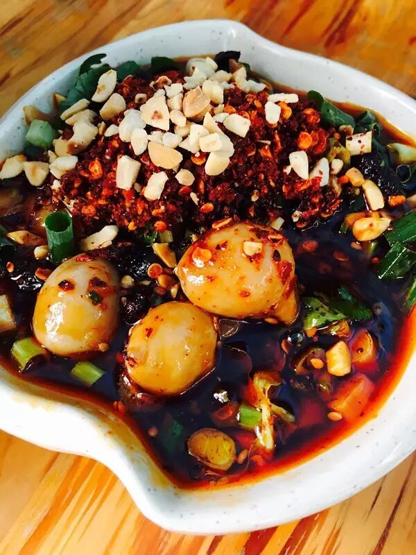 新鲜的食材,在老卤料和各种辣椒、花椒熬煮的汤料中翻滚,经验老道的师傅按照食材各自品性,烫煮相应时间,入味后取出放入青花瓷钵,端至食客面前。而食客则围坐在树荫街边,小木桌,小竹凳,就着一钵红艳艳的麻辣汤料,大快朵颐地吃着各自的美食,展示各自麻辣的心情。