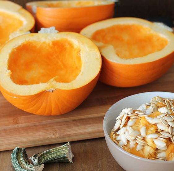 ▼南瓜的瓜瓤一般是最先开始变质的地方,所以储存南瓜的时候最好把南瓜的瓤挖掉,再用保鲜袋进行储存