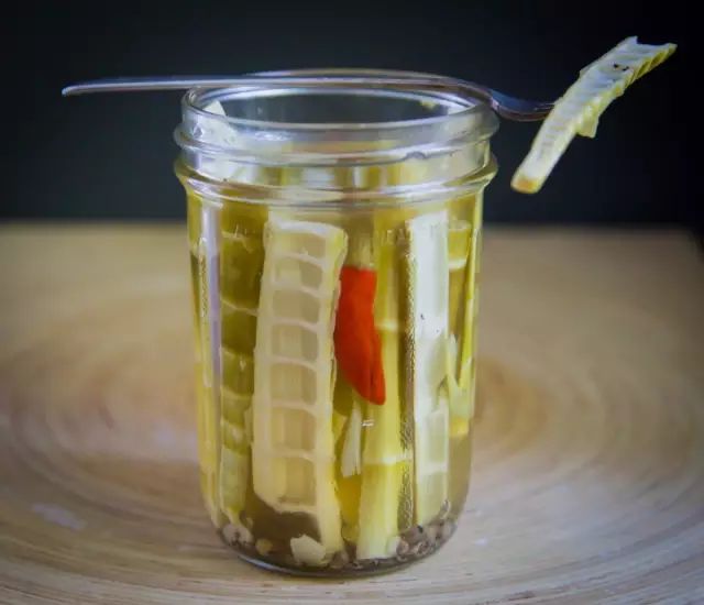 3、晾凉。煮完后的竹笋可以立即食用,也可以放入罐头中冷藏一段时间后再食用,口感更脆~