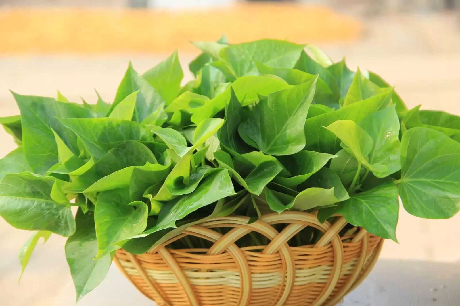 红薯叶从营养成分分析,每百克鲜红薯叶含蛋白质2.28克、脂肪0.2克、碳水化合物4.1克,钾16毫克、铁2.3毫克、磷34毫克、胡萝卜素6.42毫克、维生素C0.32毫克。将其与常见的蔬菜比较,矿物质与维生素的含量均属上乘,胡萝卜素含量甚至高过胡萝卜。红薯叶中还富含膳食纤维,能加快食物在肠胃中运转,具有清洁肠道的作用;其含有的丰富的黄酮类化合物,能捕捉到在人体内兴风作浪的氧自由基“杀手”,具有抗氧化、提高人体抗病能力、延缓衰老、抗炎防癌等多种保健作用。