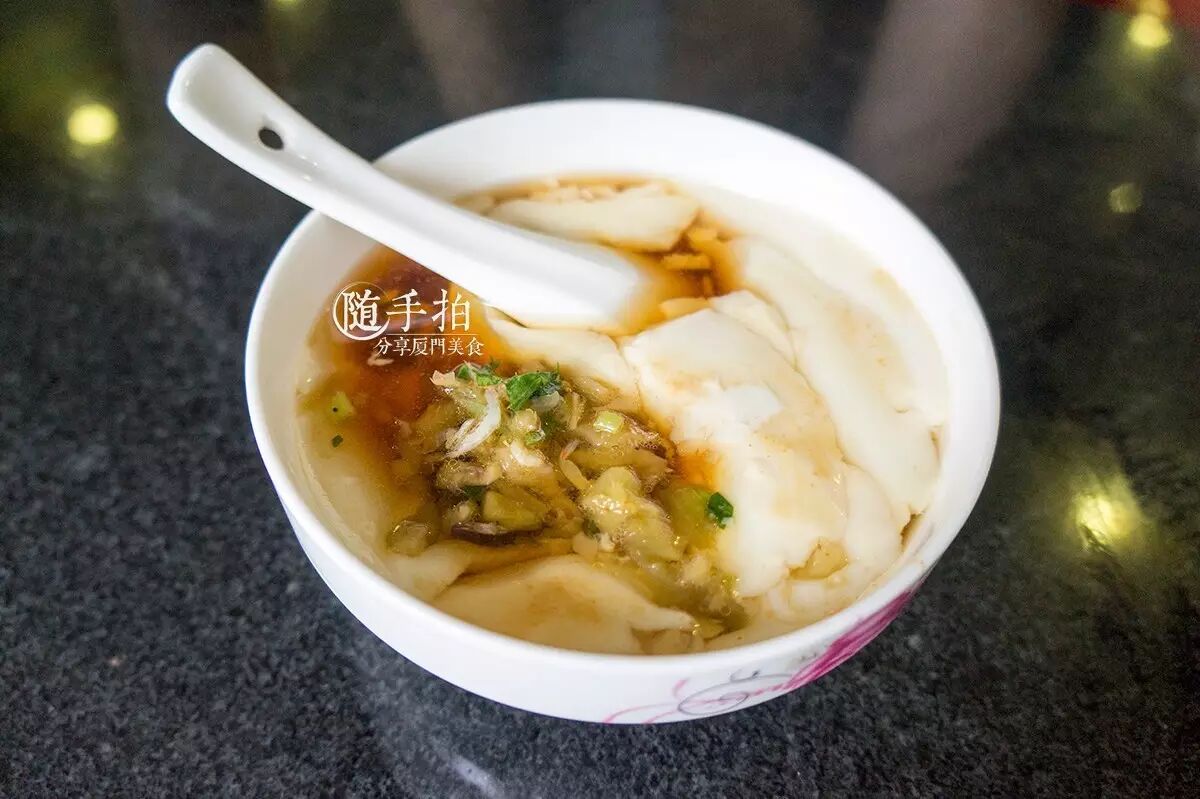 乍看之下,咸豆花的配菜有酸菜、萝卜干、虾米,豆花的口感十分滑嫩,而口腔内若隐若现的存在感也是特别舒服。不过美中不足的是酱油汁,味道偏咸了!