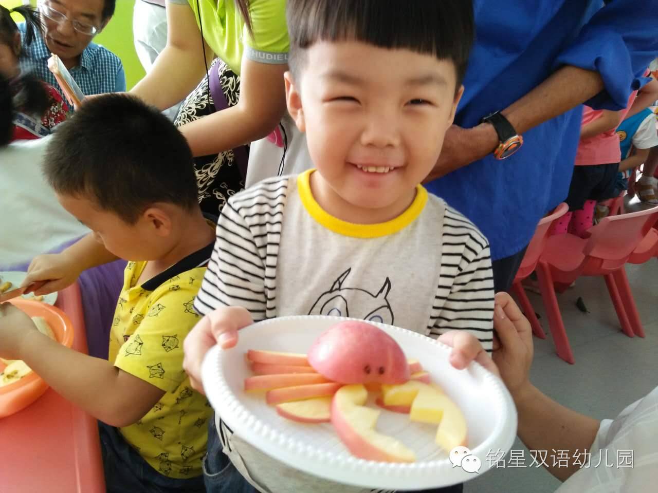 铭星幼儿园举行庆中秋水果沙拉、水果拼盘、冰皮月饼亲子diy活动圆满成功感谢家长的大力支持!