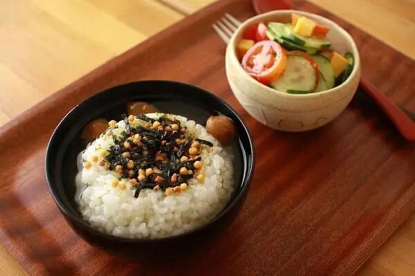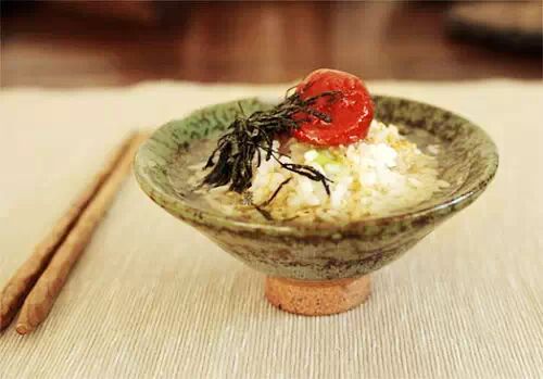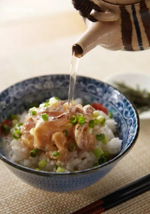事实上,茶泡饭起于清贫,这种近乎于“素食”的生活方式,不需要太多食材,也不需要太多油水,精心调料,饭粒干且硬,热汤水泡过,温淡清爽,十分适宜当宵夜吃。