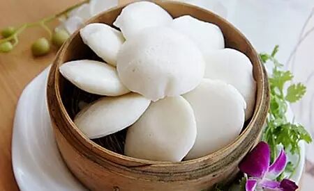米馒头是宁波人中秋美食和礼品。“米馒头”是早稻米的湿米粉发酵后蒸制的圆形无馅食品,口感好,甜而不腻,滑中带黏,伴有微酸的酒酿香味。宁波话“馒”与“满”音相同,以“米满头”讨口彩。