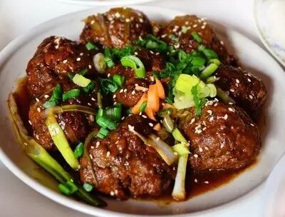 3、取适量馅放入手中,在两只手间来回摔打揉成肉丸状。锅中倒入适量油,油温热时逐个下入肉丸,揉好一个下一个,炸至表面颜色变深后捞出。