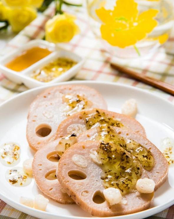 桂花糯米藕是江南地区的传统美食,和我们常吃的脆脆的口感不同,这道菜的藕软糯香甜,天气热的话还可以放冰箱里冰一下再吃,配上桂花酱或者蜂蜜,是一道很滋补的甜品。