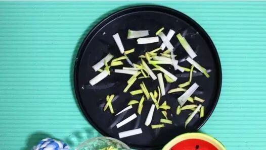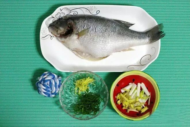 第一步,鲈鱼重量在1-1.5斤适合,去鳞洗净待用。葱和姜要切两种,一种细丝,一种粗段。