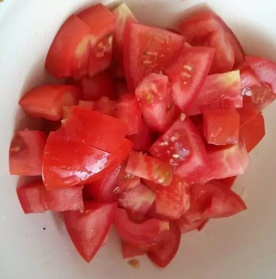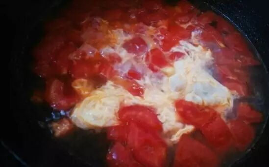 第二步,锅里放油,油热倒入西红柿翻炒几下