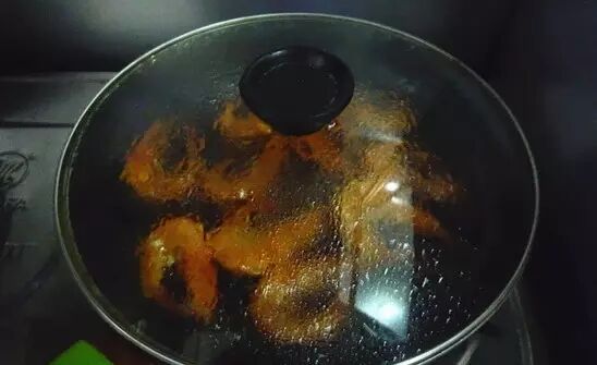 第五步,若感觉料汁少可放入适量的清水,汤汁与杏鲍菇基本齐平,盖上锅盖小火慢炖