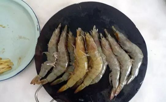 第四步,锅中放少许底油,放入处理干净的鲜虾煎制。