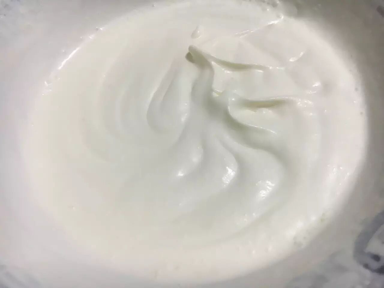 2.奶油只需打发到刚刚起纹路即可,不必打到硬性发泡。