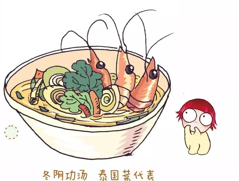 冬阴功汤,被誉为泰国的国汤,是泰国最具代表性最有名的泰式汤品,也是我最吃不惯的一道泰国菜,“冬阴”是酸辣的意思,辣味来自辣椒,酸味是来自柠檬与番茄。“功”是虾的意思,翻译过来其实就是酸辣虾汤。冬阴功汤主料为大虾和草菇,调味料有:香茅、柠檬叶、香菜叶、红辣椒,调味汁则有鱼露和青柠檬汁。泰国柠檬是东南亚特有的调味水果。鱼露则是一种典型的泰国南部调料。汤里辣味的来源是泰国朝天椒,据说这种辣椒是世界上最辣的辣椒。