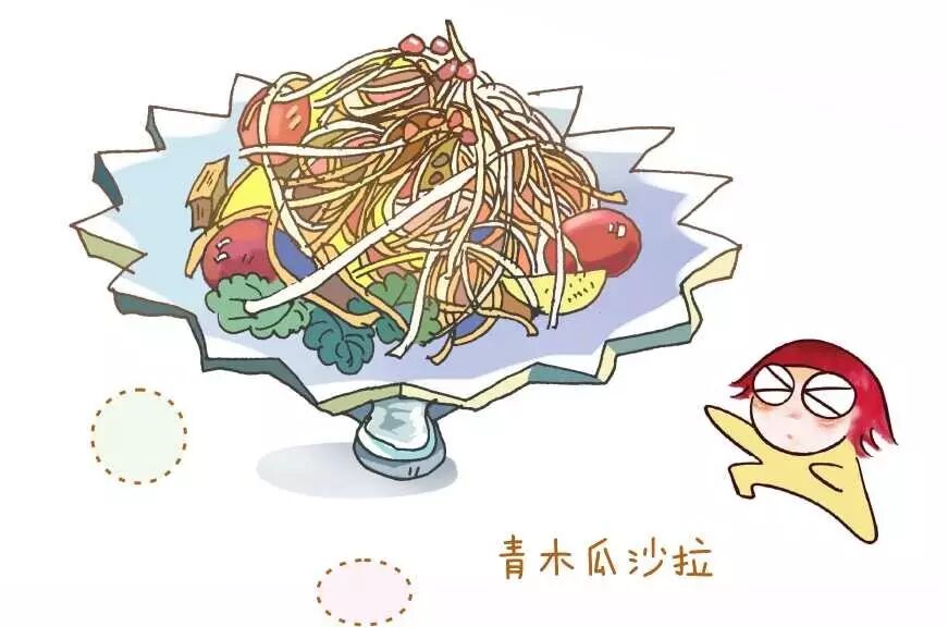 青木瓜是亚热带的特产,和国内的水果木瓜是近亲,不同的是,青木瓜的体积大,类似西葫芦,削去青绿色的皮,里面是嫩白的果肉,吃起来清脆中略带一点韧劲儿,微甜中又有一丝清苦。青木瓜沙拉是泰国人很喜欢的一道开胃小菜,入口酸、甜,随后以辣椒带出青木瓜的鲜脆口感,搭配生菜与花生颗粒的嚼感,小小的一碗青木瓜沙拉里却融合了泰国四大主要的风味:酸、咸、甜、辣,给你带来各种感官上的刺激,让人一吃就胃口大开。