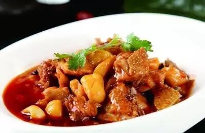 做法:仔母鸡宰杀去毛、去内脏、头、爪,洗净,切下颈项后切块,板栗去壳。