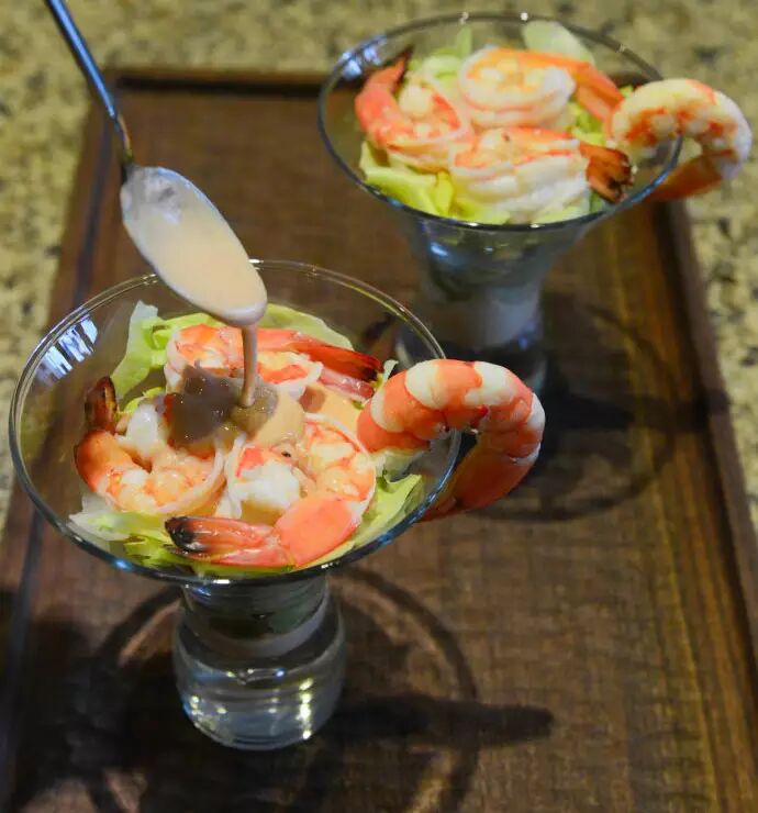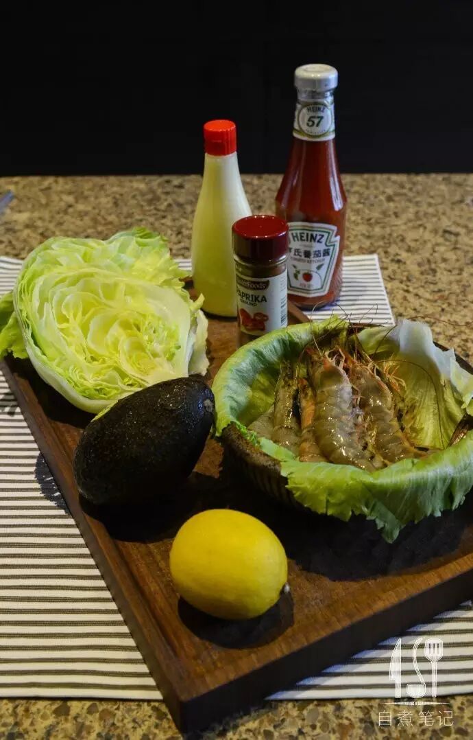 这道【鲜虾鸡尾杯】,英文里叫做shrimp cocktail。初次见到,还以为真的是用大虾调制的鸡尾酒,充满了略略不安的期待,仿佛幼时第一次点“蚂蚁上树”的心情。后来为菜谱做功课,才发现英式和美式的shrimp cocktail居然大相径庭:英式的配料丰富摆盘精致;美式的只是一盘光溜溜的虾仁配蘸酱。今天做的便是英式的【鲜虾鸡尾杯】啦!