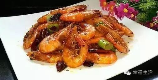 大虾1斤、花椒适量、大料适量、干辣椒适量、葱适量、姜适量、小茴香适量、盐 适量、鸡精少许、料酒适量、花生油适量