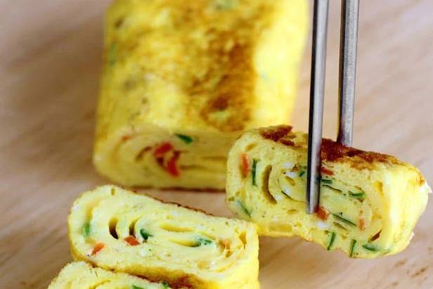4. 取出煎好的鸡蛋卷,切成方块状即可食用。