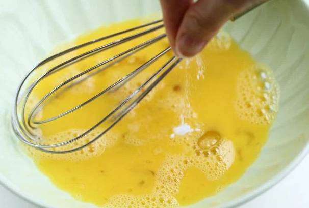 1. 鸡蛋打入一个碗中,加入适量食盐,搅匀。