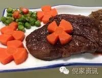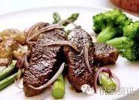 不粘锅烧到冒烟,把牛排放进锅中,用夹子压一压,确保牛肉均匀受热。每面煎2分钟(肉厚的可以煎久一点,但再厚的肉也不能超过 4分钟,否则牛肉太老咬不动),这样五成熟,外焦,里面还是粉红色,没有血水,给儿子吃放心。