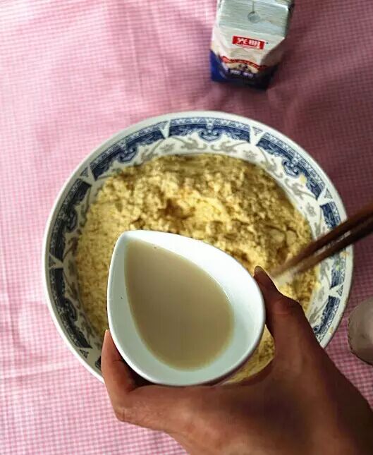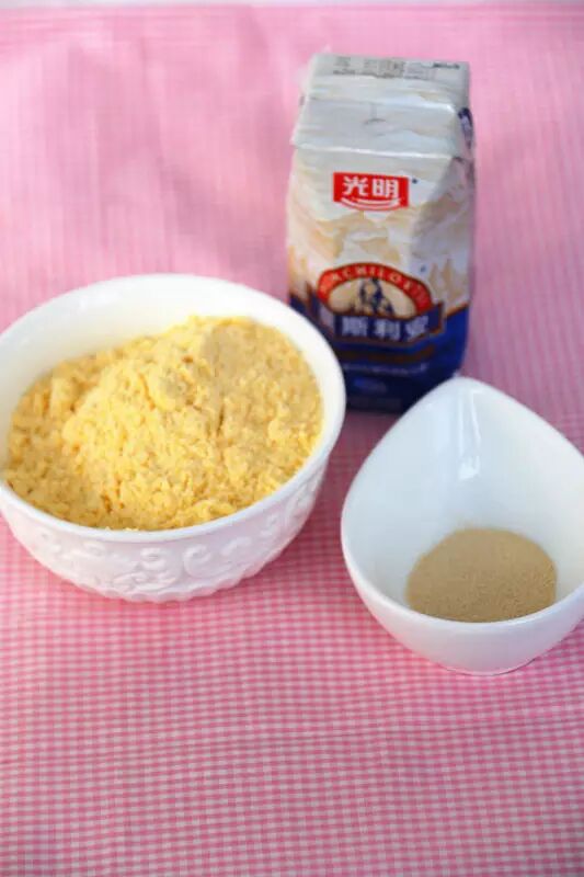 1. 将细玉米面、黄豆粉放入盆中,倒入酸奶,再加适量温水和面,然后揉和均匀,使面团柔韧有劲;