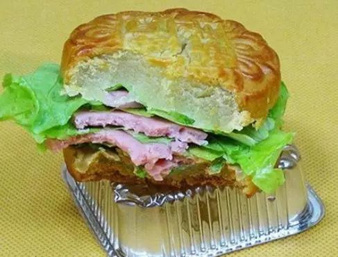 ▲方法:把月饼切成薄片,选用生菜、培根或者火腿夹在中间,制成“月饼三明治”,配合低脂牛奶或豆浆食用,再加一份水果,味道很不错。
