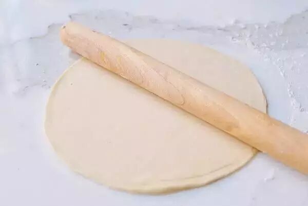 3.用擀面杖将面团擀成直径十八厘米的圆饼