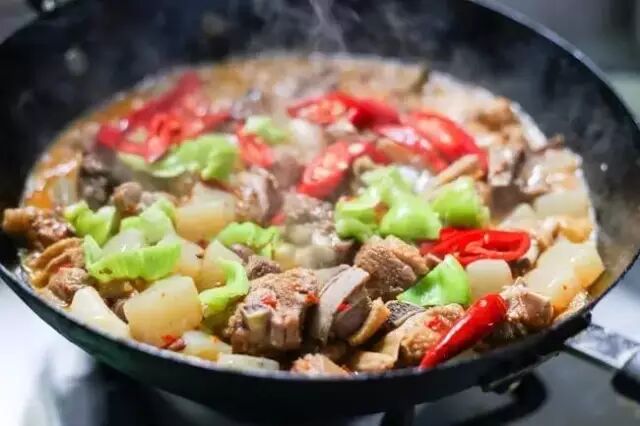 6.打开锅盖,收汁,最后加入新鲜的辣椒进行翻炒,起锅完成~