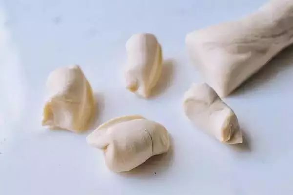 1.制作面饼。将和好的面饼揪成小团。(吃烤鸭的面饼可以自己买也可以自己在家做,更劲道~)
