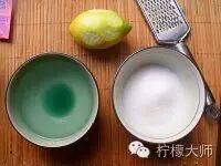 取3个柠檬的皮屑。最好用新鲜的柠檬鲜果,用盐稍微搓洗下柠檬表面。如果不是柠檬大师的果子,这个步骤更不能省略。因为有些渠道卖来的柠檬,为了保鲜或运输,可能果子表面会有蜡和残留的药物。