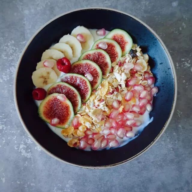 燕麦+酸奶+石榴+无花果+树莓+香蕉