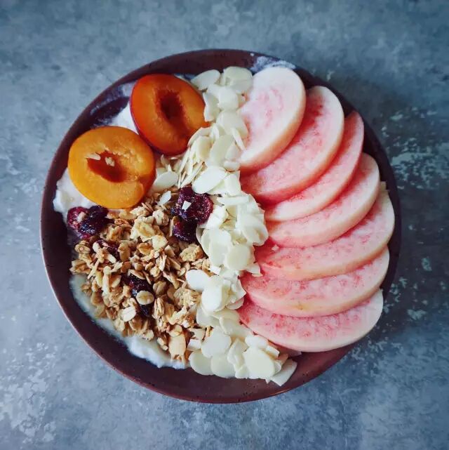燕麦+酸奶+水蜜桃+杏仁片+李子+蔓越莓干