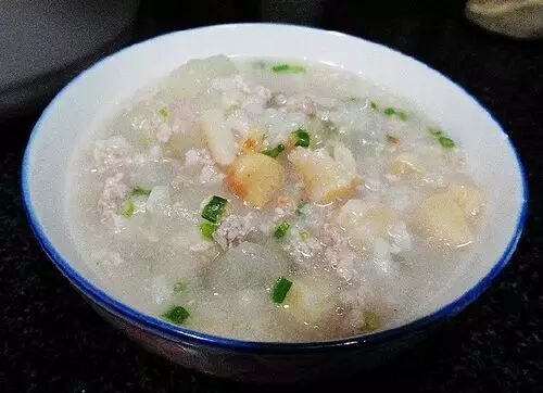 制法:冬瓜洗净,带皮切成小块,和粳米一起放入沙锅加水,文火熬煮至瓜烂米熟成粥即成。此粥根据口味可做成甜或咸的,最佳食用时间是每天上午和下午的餐饮时间。