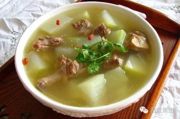 3、冬瓜陈皮老鸭汤:秋天宜喝鸭汤,但要煮得久。取老鸭一只,与适量冬瓜、薏米、陈皮、红枣混合,慢炖3个小时以上,即可做成一锅色香味俱全的老鸭汤。