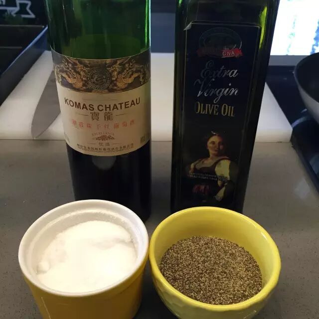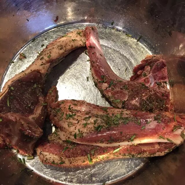羊排放置数分钟后,再刷上一瓶盖的橄榄油,腌制半小时入味