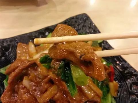 2、将牛肉切成薄片,加料酒、生抽、糖、苏打粉、淀粉、少许清水拌匀,再淋1茶匙芝麻油上浆腌制30分钟。