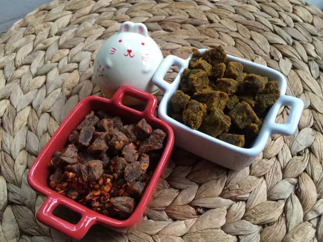 5.取出换一个新的盘子然后用剪子把牛肉剪成0.5cm的小丁,继续放微波炉加热30秒出去翻面加热30秒