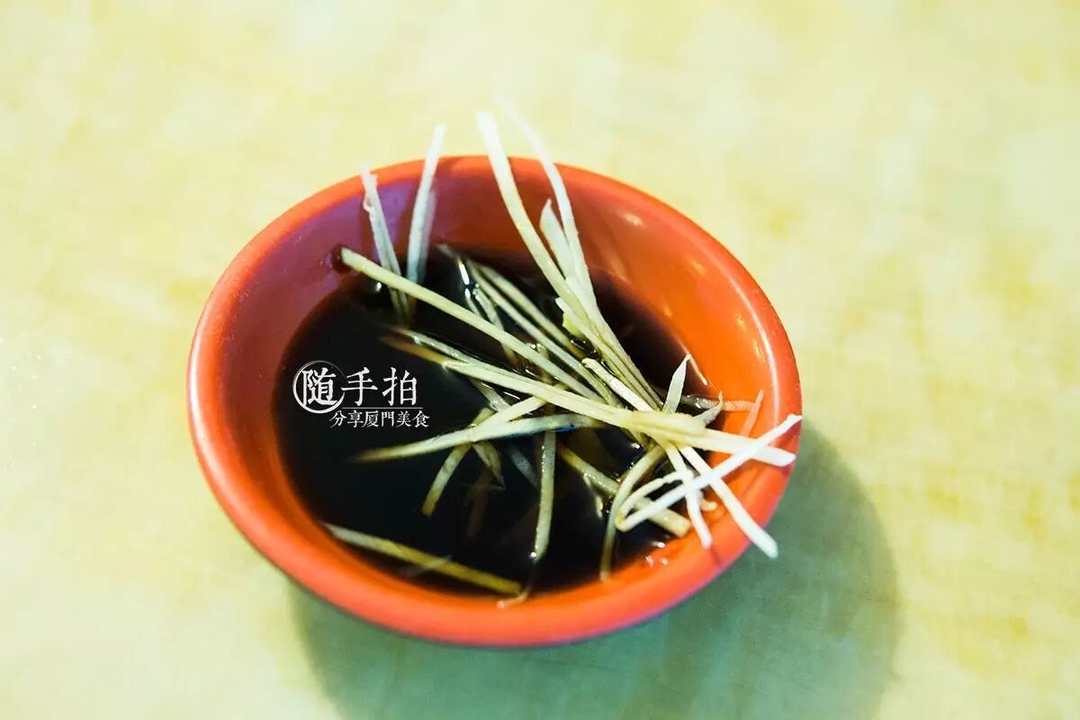 姜碟和茶水一同送上,加醋还是酱油、全凭食客个人喜好。