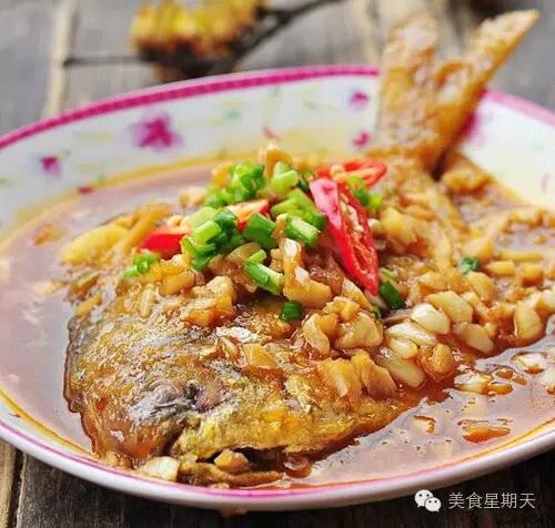 食材:平鱼2条、大蒜1头、香葱3个、红辣椒3个、盐1茶匙、蒸鱼豉油2汤匙、米酒2汤匙、白糖1/2茶匙、干淀粉1汤匙