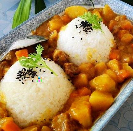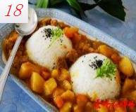 18.将米饭扣入盘中浇上咖喱牛肉即可。