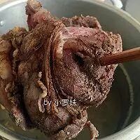 7. 腌制好的牛肉放锅中,添加适量水,老姜,再添加一勺盐,因为牛肉汤还要再次使用,所以要注意汤卤盐量的控制,腌制一夜的牛肉,只添加少量盐以保持牛肉盐味不会流失就可以了!