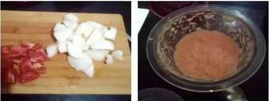 1、准备好食材,番茄洗净切块,梨去皮切块。